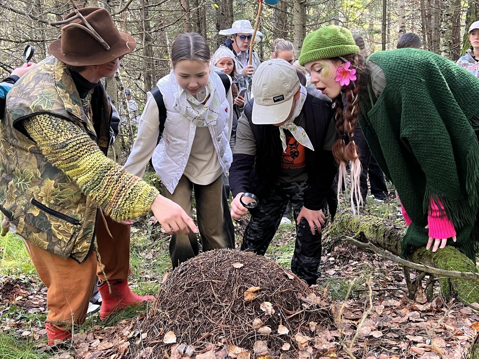 Ребята прошлись по маршруту «Образ сибирской тайги». На пути их сопровождала аудиосказка, которую написала известная тобольская писательница Зуля Стадник и озвучил актер Вячеслав Чепурченко.